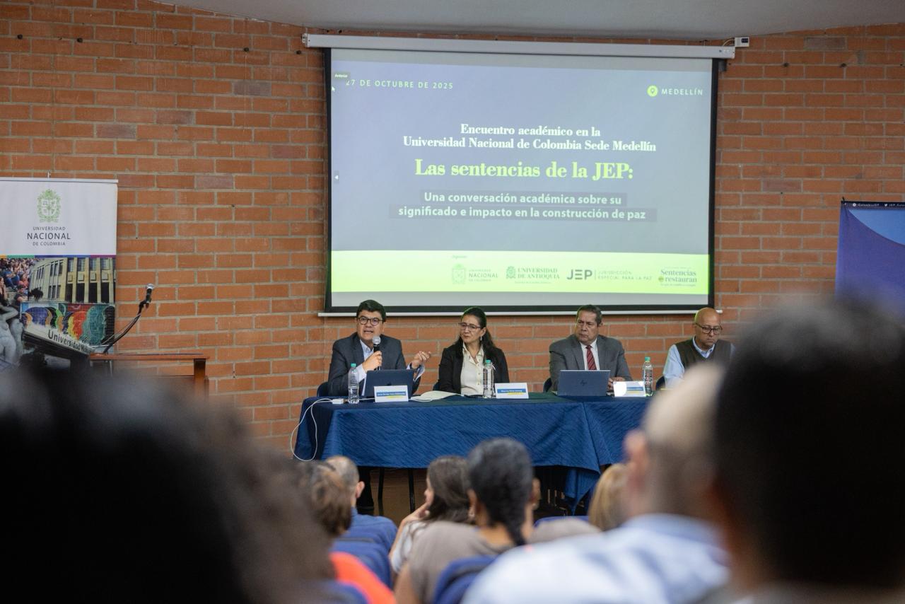 En el auditorio Gerardo Molina de la Universidad Nacional de Colombia, sede Medellín, se reunieron académicos, estudiantes y magistrados de la Jurisdicción Especial para la Paz (JEP) para reflexionar sobre el significado de las primeras sentencias emitidas por el tribunal transicional y su impacto en la construcción de paz. El encuentro, organizado por la Universidad Nacional, la Universidad de Antioquia y la JEP, buscó acercar a la ciudadanía al contenido y alcance de las decisiones judiciales que marcan un hito en la historia reciente del país.