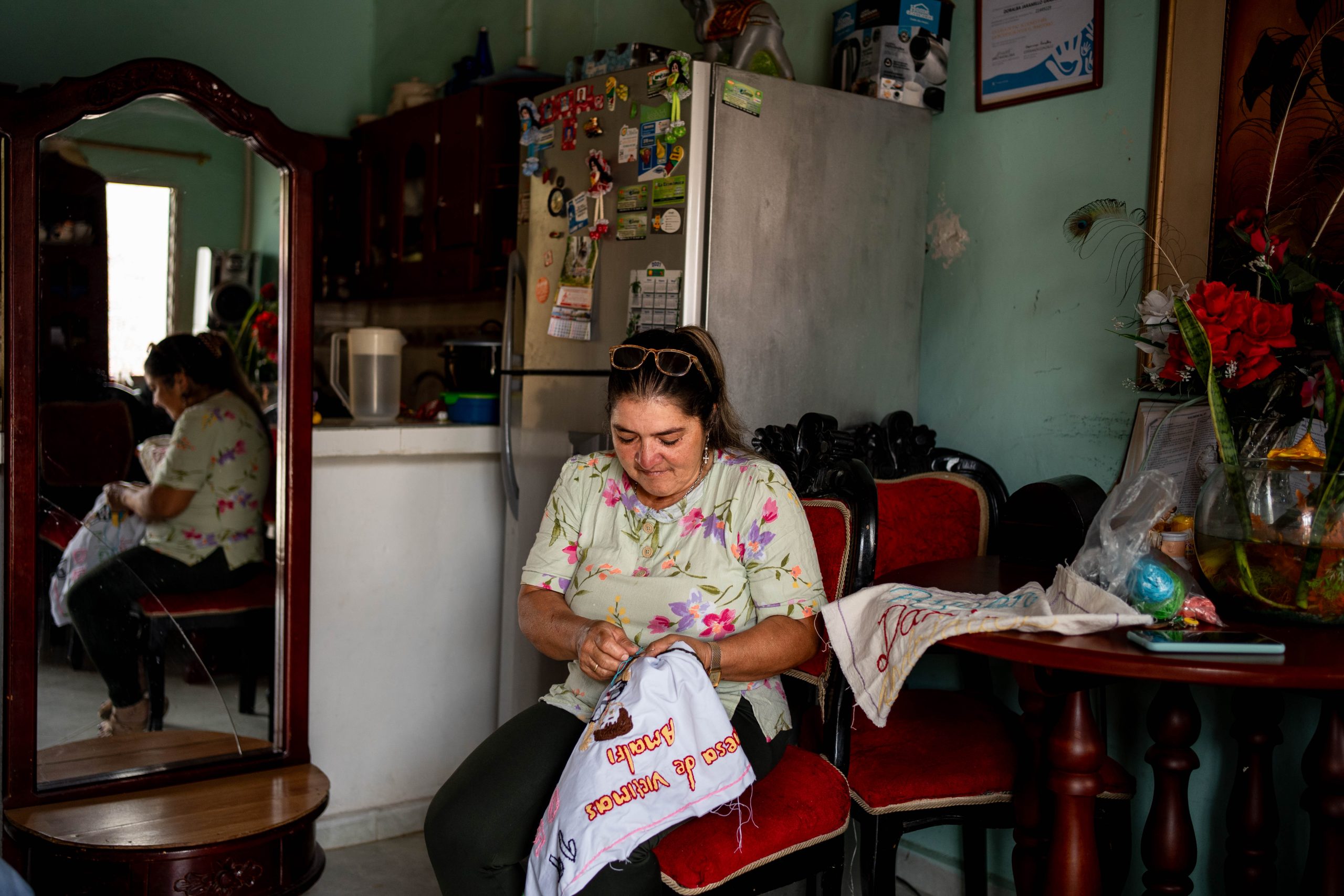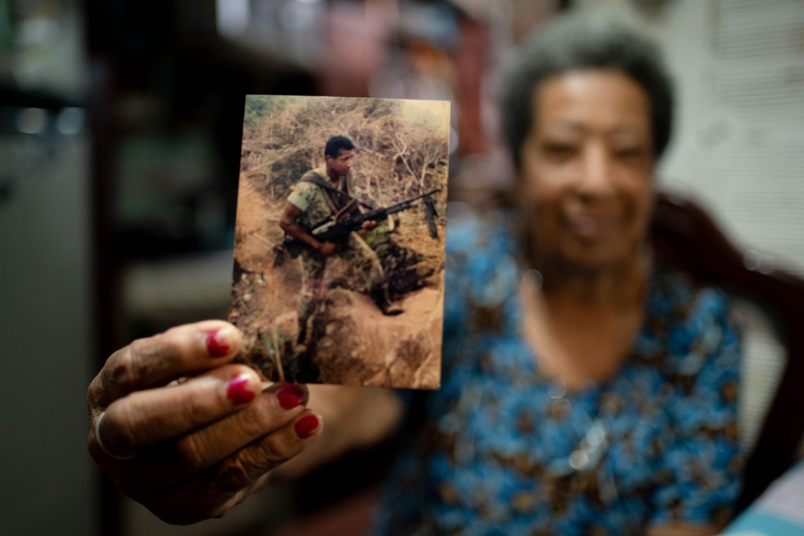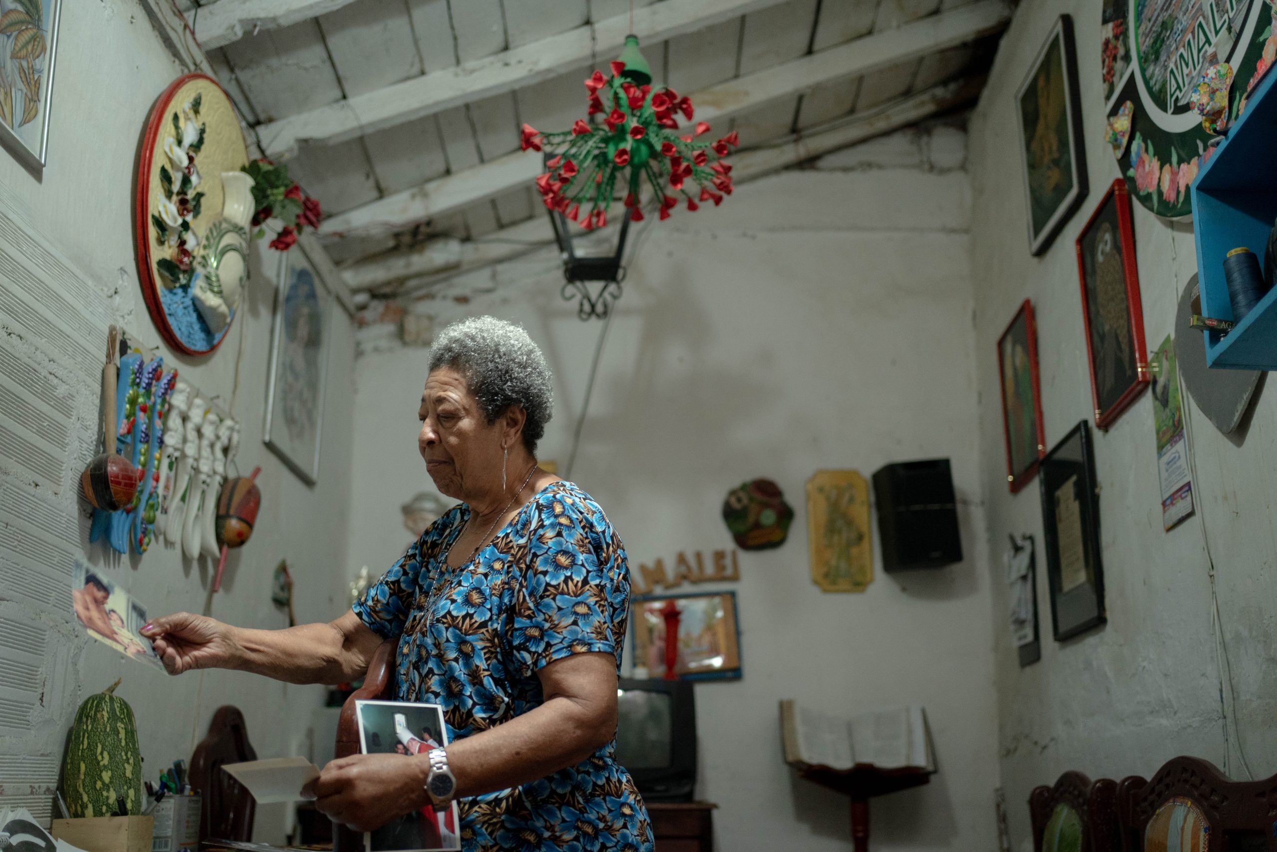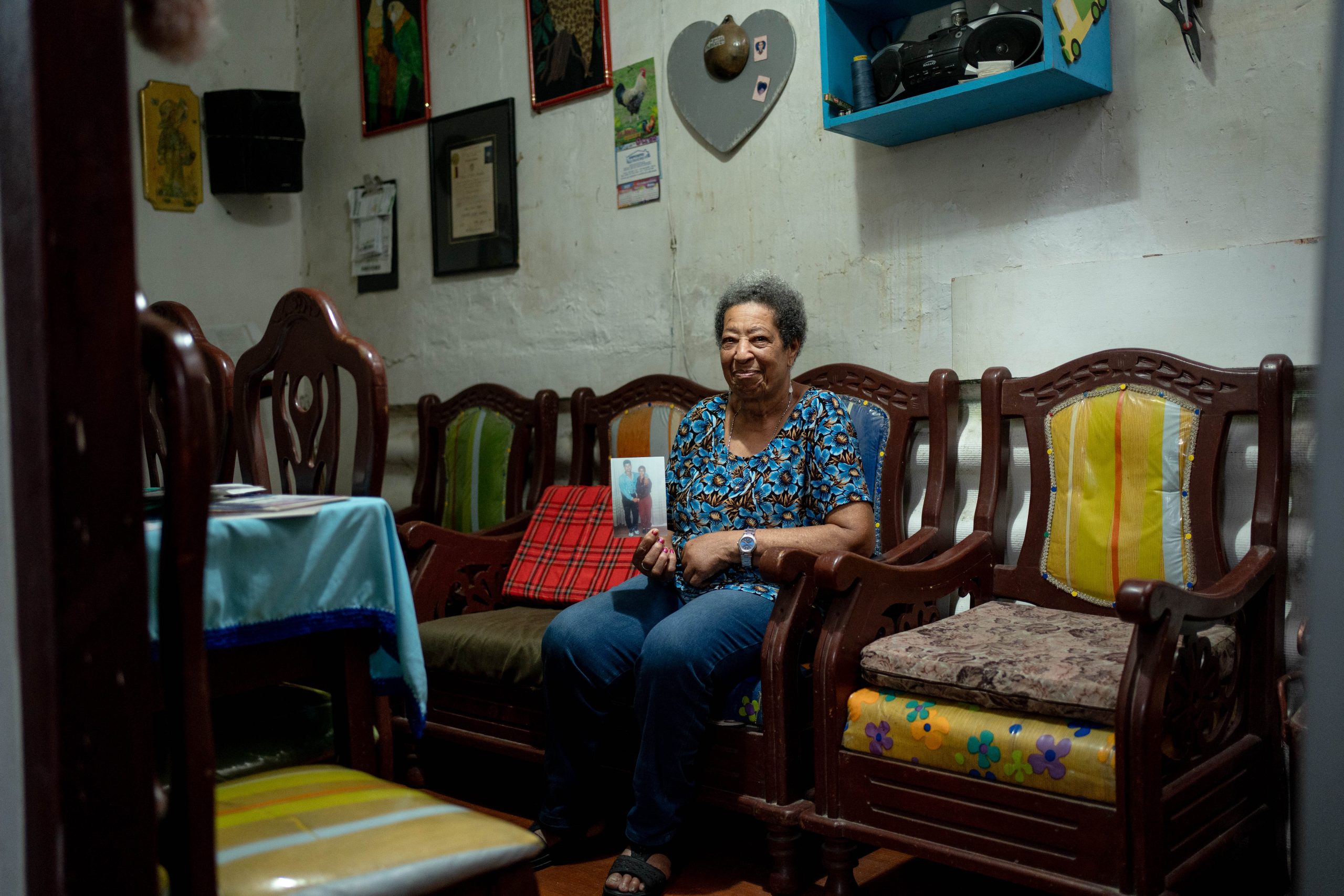 “Hace 46 años que estoy acá. A mi hijo Omar se lo llevó un grupo armado y no volví a verlo nunca. Él me decía que le cargara la mano con arroz porque le gustaba mucho; yo le echaba bastante cuando había. Yo lo espero a él diario, así sea muerto, los meros huesos, el polvo. A veces sueño que llegó y me levanto muy contenta. Tengo 78 años y todavía lo espero. Estoy en la Asociación de víctimas, allá uno escucha cositas y se distrae”.